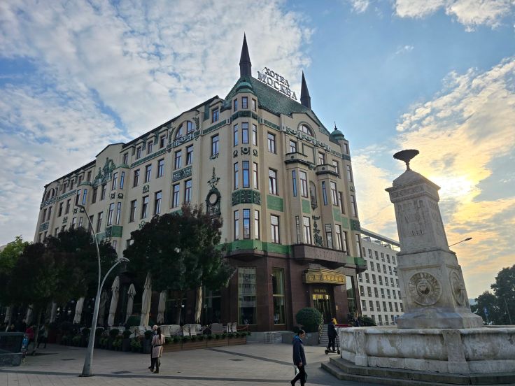 Nur wenige Meter vom Platz der Republik entfernt, liegt eines der schönsten Gebäude der Stadt: das Hotel Moskva (Moskau) aus dem Jahr 1908. Das ehemalige Gebäude einer Versicherungsgesellschaft (Rosija Palast) ist ein prächtiges Jugendstilgebäude und heute ein Hotel samt Restaurant und Café, auch bei Brautpaaren als Kulisse beliebt. Fast überall sonst ist Belgrad sehr günstig – hier zahlt man für’s Ambiente, aber wir gönnen uns trotzdem einen Nachmittagscafé, untermalt von Klavier-Livemusik. Bei unseren Spaziergängen durch die Stadt begegnen uns weitere hübsche Jugendstilgebäude wie das denkmalgeschützte Haus des serbischen Mathematikers und Philosophen Mihailo Petrovic, genannt Dom Mike Alasa.