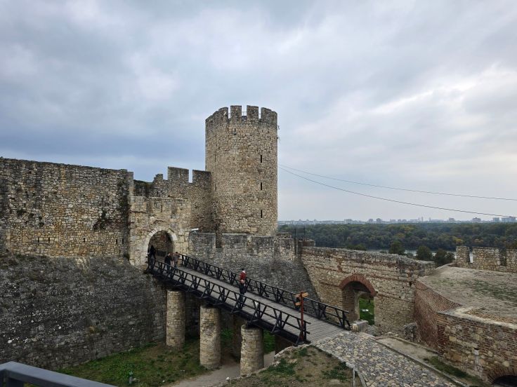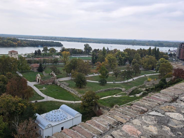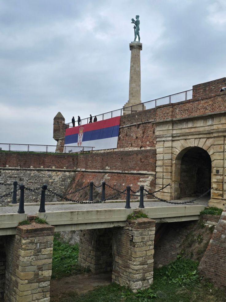 Am anderen Ende der Fußgängerzone liegt eine weitere Hauptattraktion der Stadt: der ausgedehnte Kalemegdan-Park. In diesem Park kommt garantiert jeder Besucher irgendwo auf seine Kosten, es ist die Freizeiteinrichtung der Stadt. Ihr sucht Erholung, Gartenanlagen oder Ausblicke auf die Flüsse Sava und Donau? Oder Bunkeranlagen, römische Ruinen und andere historische Bauwerke? Ein Militärmuseum, einen Dinopark oder Tennisplätze? Oder ein Souvenir in Form von Diktator-Socken aus aller Welt? Alles kein Problem im Kalemegdan-Park. Bekannt ist der Park vor allem für seine zwei Belgrader Wahrzeichen: die Festungsanlage sowie die Statue des Pobednik, des Siegers. Er schaut hinaus auf den Punkt, an dem sich die Flüsse Sava und Donau treffen.