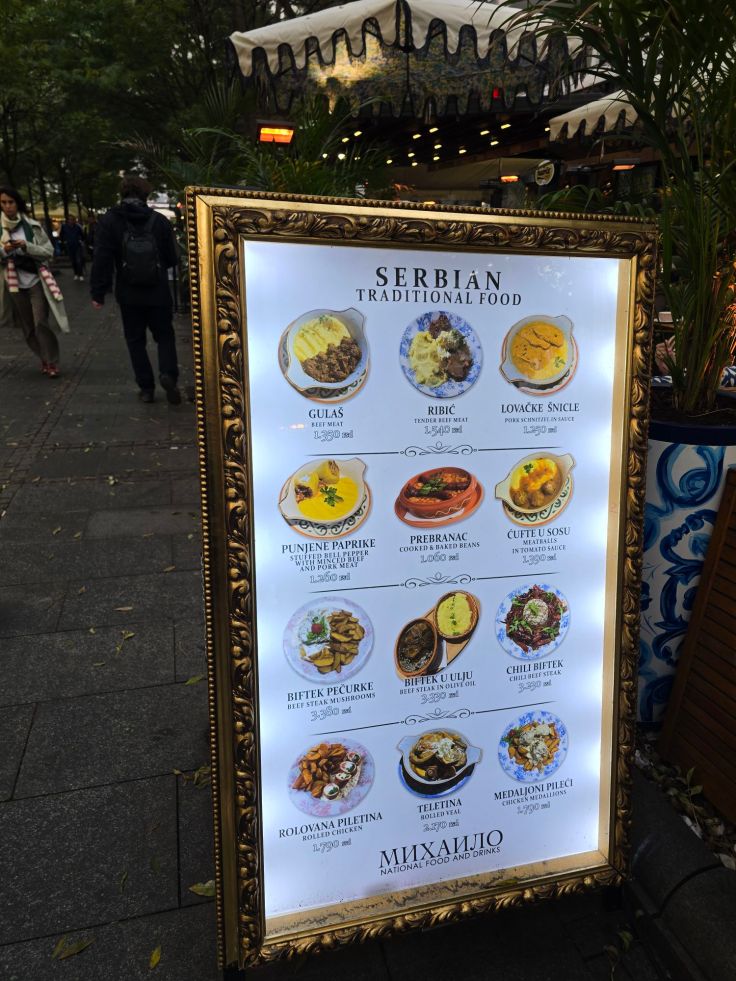 Wer in Belgrad Essen gehen will, wird überall fündig. Die Hauptrestaurantmeile der Innenstadt befindet sich in einer Parallelstraße der Kneza Mihaila, der Obilicev Venac. Hier reiht sich ein Restaurant an das andere, allerdings ist es hier ziemlich touristisch. Etwas charmanter zum Essengehen, aber ebenso touristisch, ist das Ausgehviertel Skadarlija rund um die Skadarska Straße. Dieses unter Denkmalschutz stehende Gebiet versteht sich als Künstlerviertel und wird vom Stadtmarketing gerne mit Montmartre in Paris verglichen. Das ist in meinen Augen doch sehr überzogen, wenngleich es eine schöne Ecke mit zahlreichen Restaurants und Cafés ist. Wir haben uns aber für ein anderes Ausgehviertel entschieden, wir begeben uns an das Flussufer. Sowohl an der Save als auch am Donau-Ufer im Ausgeh-Viertel Dorcól, sind auch die Einheimischen und viele junge Leute unterwegs. Auf dem Weg dorthin kommen wir durch gänzlich untouristische Stadtgebiete: Malerischer Zerfall neben neben gutbürgerlicher Architektur, Kleingarten-ähnliche städtische Selbstversorgungsstrukturen neben Graffiti-Elementen – eine spannende Mischung. Wir landen letztendlich in der Cevap-Bar Crni Dorde: Hier treffen sich tagsüber Mütter mit ihren Kindern, Studenten und Besucher gleichermaßen. Natürlich essen wir das serbische Nationalgericht: Cevapi (Einzahl: Cevap), bei uns besser bekannt in der Verkleinerungsform Ćevapčići. Eines kann ich euch sagen: Verkleinerungsformen für Fleisch sind in Serbien kaum zu finden. Bei jedem Fleischgericht wird auf der Speisekarte die Grammzahl angegeben, alles unter 300 Gramm ist Vorspeise, die Hauptgerichte bestehen meist aus 400 bis 450 Gramm Fleisch. Neben Cevapi findet sich auf der serbischen Speisekarte vor allem Gulasch, Sarma (gefüllte Kohlrouladen) und Pljeskavica (Hacksteaks), als Gemüse kommen oft, gerade jetzt im Herbst, Paprika, Bohnen und Kohl auf dem Tisch. Zu den wie gesagt mehr als üppigen Fleischportionen werden oft Zwiebel und/oder Ajvar, eine Paprika-Paste, gereicht. Der Wirt im sehr empfehlenswerten Restaurant Ciribu Ciriba in Zemun ist sichtlich enttäuscht, weil wir zu zweit nur eine typische Vorspeise – zwei gefüllte und panierte Paprika (Punjene Paprike), einen Salat und eine dieser Fleisch-Riesenportionen (450 Gramm) bestellen, die wir dann nicht einmal zu zweit ganz schaffen. Das ganze Mittagessen kostete übrigens im Crni Dorde in Belgrad keine 20,- Euro, im Ciribu Ciriba haben wir etwa 25,- Euro bezahlt – mit Getränken, versteht sich.