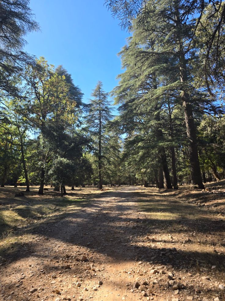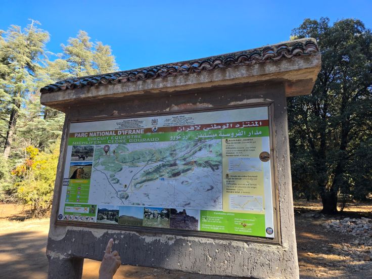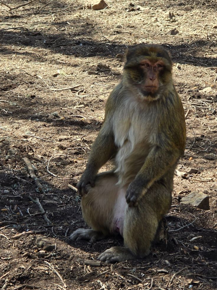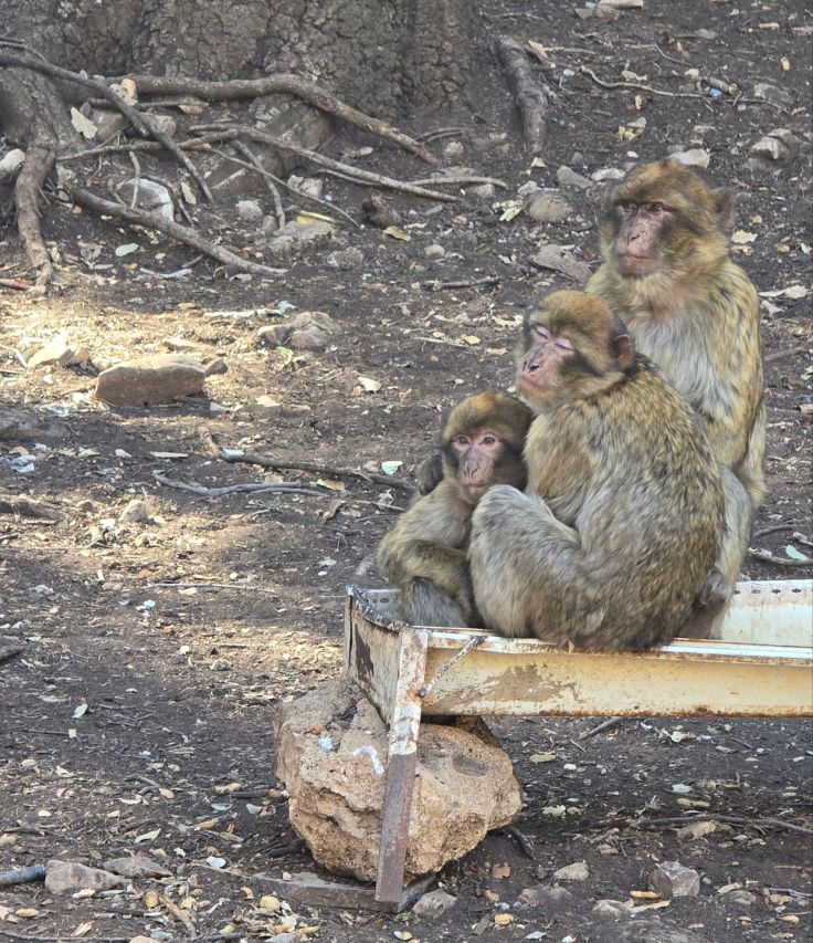 Charakteristische Baumart in dieser Gegend, falls nicht abgeholzt, ist die Atlas-Zeder (Cedrus atlantica), die seit 2013 auf der Roten Liste gefährdeter Arten steht. Dank des Ifrane Nationalparks wird ein großer Bestand an Atlas-Zedern geschützt, viele sind mehrere hundert Jahre alt. Eine der ältesten und größten Atlas-Zedern hier ist die – leider abgestorbene – etwa 42 Meter hohe Cèdre Gouraud, die bei einem Parkplatz des Nationalparks nahe des Städtchens Azrou steht. Von hier starten wir eine kleine Tour durch den Zedern- und Steineichenwald (Quercus ilex), die zweite vorherrschende und glücklicherweise nicht gefährdete Baumart hier. Wälder sind etwas Besonderes gerade für Marokko, aber noch spannender als die Zedern sind für die meisten Besucher die zahlreichen Berberaffen (Macaca sylvanus), die hier leben. Marokko hat die größte Population an Berberaffen weltweit, aber auch ihr Bestand ist stark gefährdet, in Ägypten und Libyen sind sie bereits ausgerottet. Sie haben kaum Scheu vor Menschen und wer sich hier zum Picknicken niederlässt, sei gewarnt: Das Volk kann diebisch sein, obwohl es sehr unschuldig tut – und tatsächlich deutlich weniger aggressiv ist als ihre Verwandten, die ich in Gibraltar kennengelernt habe.