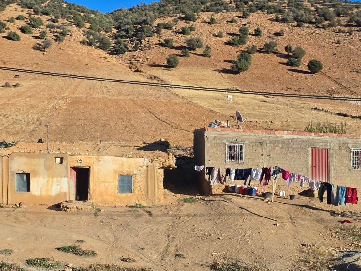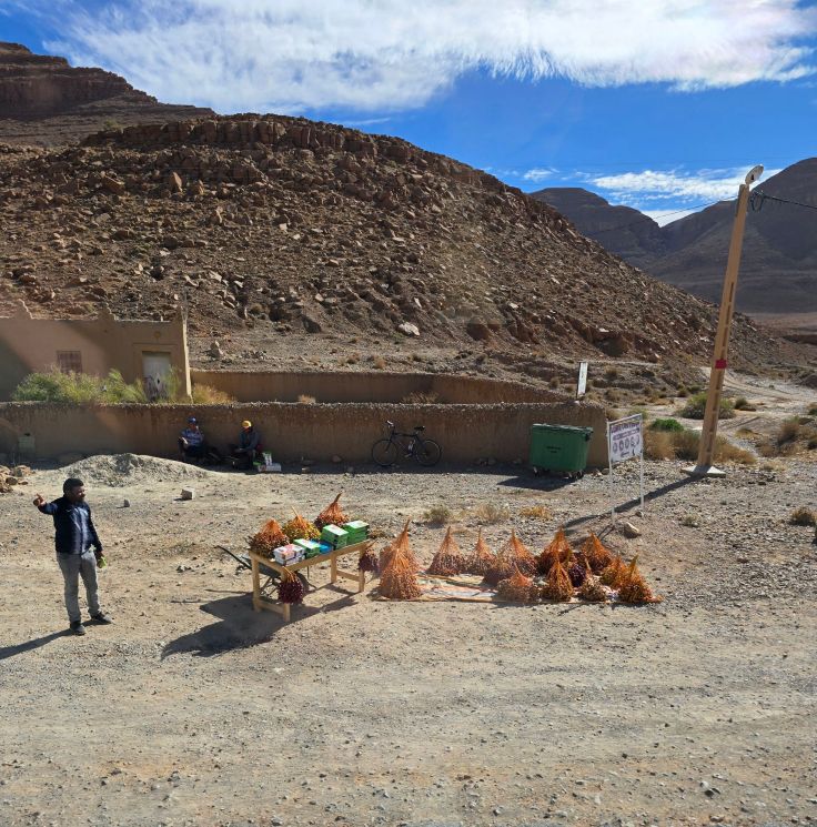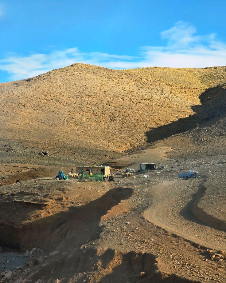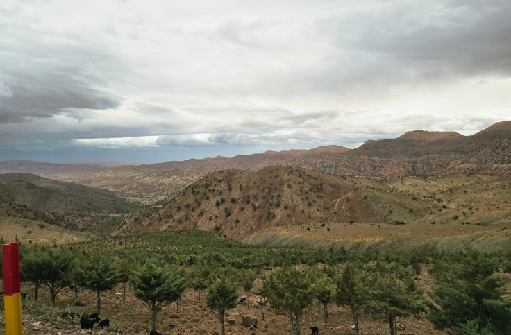 Auf den Mittleren Atlas folgt in Richtung Süden eine Hochebene, erneut geprägt von halbnomadischen Tierherden und interessanterweise zahlreichen Apfelplantagen, unter anderem bei der Kleinstadt Midelt. Auch einige Dattelverkäufer säumen die Straße. Schließlich erhebt sich sich hinter der Hochebene die Gebirgskette des Hohen Atlas, wie der Name sagt noch höher, markanter und landschaftlich eindrucksvoller als der Mittlere Atlas.