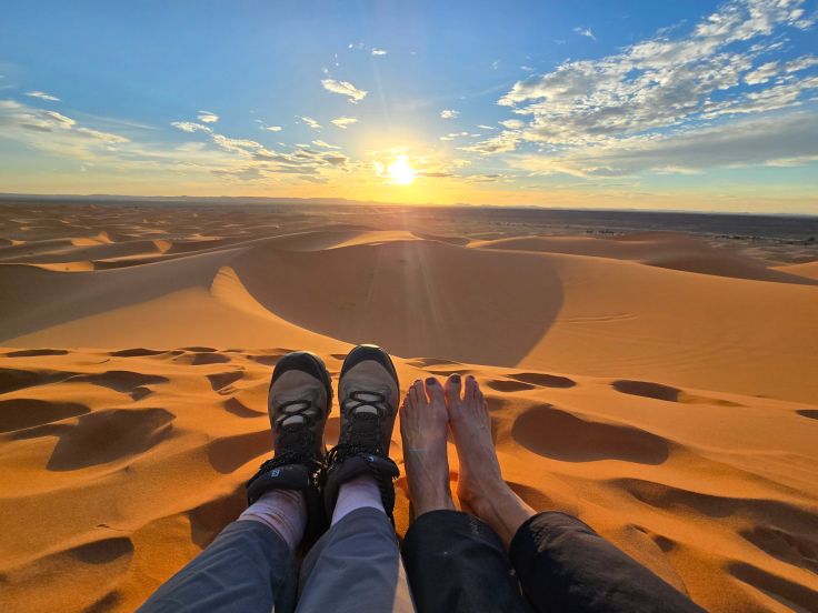 Ihr habt es sicher herausgelesen: Wir waren begeistert. Das nächste Mal würde ich mir ein kleines Camp zum Übernachten im Erg Chebbi suchen, möglichst abseits von anderen Unterkünften, um dort nach einer Wanderung durch das Sandmeer am prasselnden Feuer ein traditionelles Mahl zu genießen und mich anschließend an Milliarden leuchtender Sterne, fernab jedweder Licht- und Lärmverschmutzung, erfreuen. Wahrlich ein Grund, wieder herzukommen!