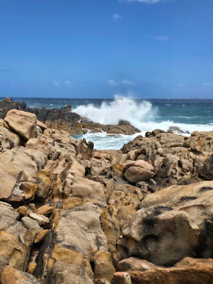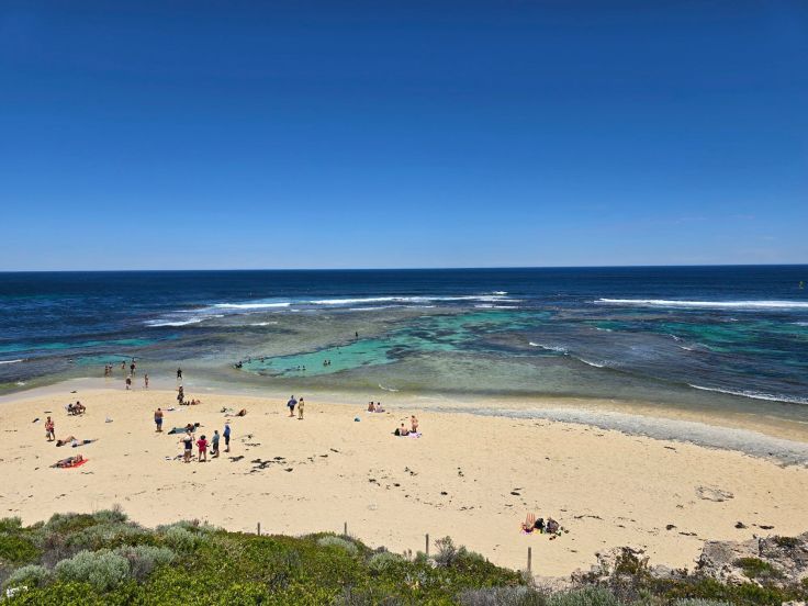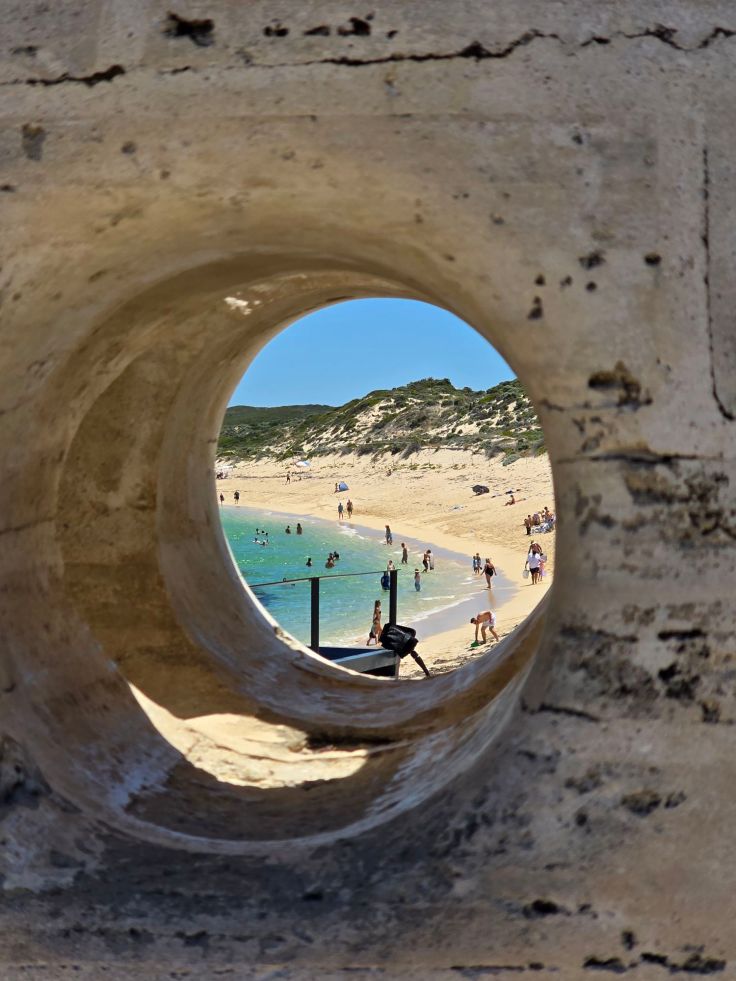 Weiter nordwärts folgt mein persönlicher Favorit: Injidup Natural Spa. Ich bin nämlich eher ein Fan von felsiger Küste, zumindest wenn es um die Optik geht. Nach der Injidup Beach mit langem Sandstrand folgt Injidup Natural Spa: hier ergießt sich der tosende Indische Ozean in malerische Felsformationen. Ich finde: ein Traum. Tatsächlich kann man in dem „Natural Spa“ auch Baden, wir verzichten und genießen die Landschaft. Je nach Saison und Wetterlage (bei uns war es extrem heiß und windig, daher war eher wenig los) ist es hier gnadenlos überfüllt, was bestimmt die Stimmung trübt.