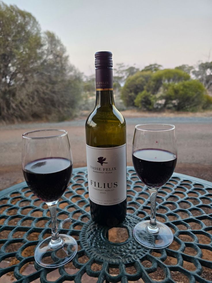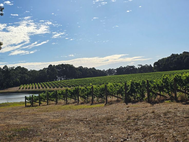 Unsere Fahrt geht weiter nach Margaret River, dem Touristenzentrum dieser Region. Das Kleinstädtchen ist umgeben von sich weitläufig verteilenden Weinbergen und Weingütern, die in ihrer Gesamtheit eine der besten Weinbauregionen der Welt bilden. Erst kürzlich (2025) hat Margaret River bei den Decanter World Wine Awards mit zahlreichen Medaillen und Top-Auszeichnungen als Australiens am meisten ausgezeichnete Region abgeschnitten. Auch die Wine & Spirits Competition (IWSC) hat Margaret River als „World’s Best Wine Region“ für 2025 gekürt. Die Region ist vor allem berühmt für ihre Cabernet Sauvignons, aber auch Shiraz, bei den Weißweinen insbesondere für Chardonnay, daneben auch Semillon und Sauvignon Blanc, letztere oftmals als Cuvée. Mediterranes Klima, eine stetige Brise von Meer und gut durchlässige Kalkböden sind die erfolgsversprechenden Faktoren. Genau wie um Bordeaux, wie die Locals gerne betonen.