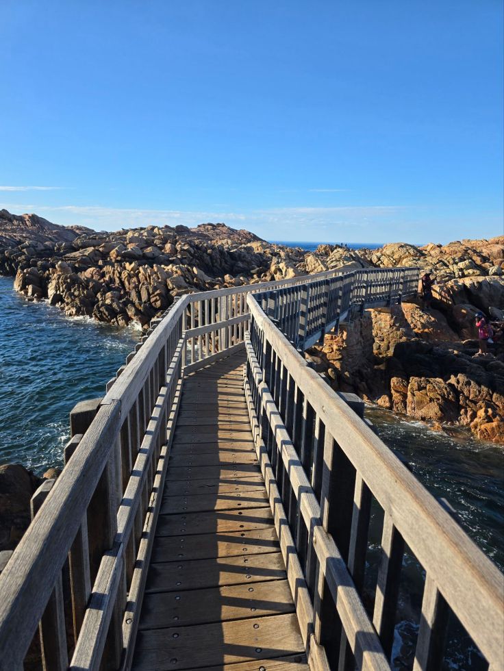 Kurz darauf folgen die ebenfalls sehr malerischen Canal Rocks, auch hier bilden malerische Granitfelsen die Kulisse. Die Besonderheit hier: Ein Steg führt über den Kanal. Sowohl hier als auch beim Injidup Natural Spa lohnt es sich, die Drohnenbilder im Internet anzuschauen.