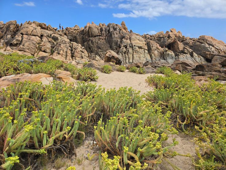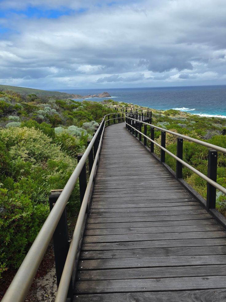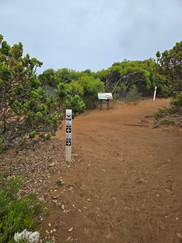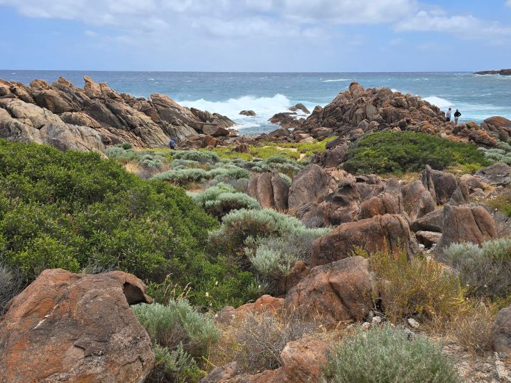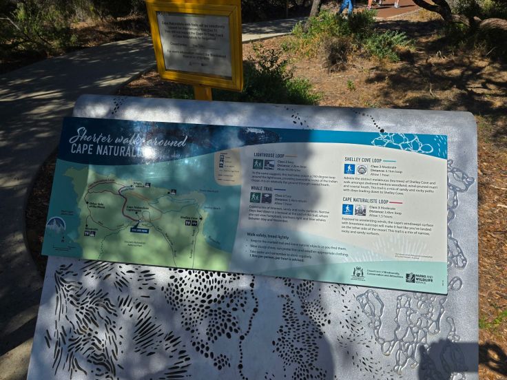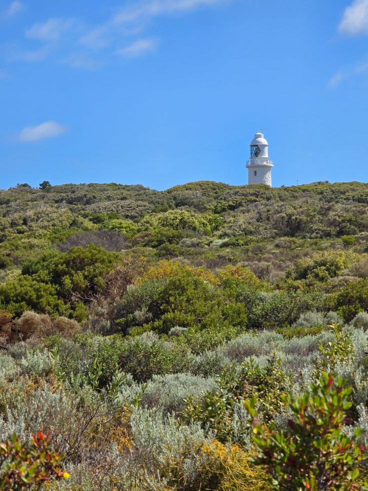 Am nördlichen Ende des Nationalparks liegt der Cape Naturaliste Leuchtturm. Hier können nicht nur Strände bestaunt, sondern auch kleinere und größere Walks gemacht werden, der größte ist der Cape to Cape Track, der auf 130 Kilometern Länge die beiden Leuchttürme am Nord- und Südende der Halbinsel verbindet. Wir laufen zumindest einen kleine Teil davon auf dem Sugarloaf Rock Walk, der großartige Ausblicke aufs Meer bietet und sehr gut ausgebaut ist. Während der Walsaison (April bis November) sind nicht selten Wale hier zu sehen. Weniger attraktiv fanden wir den Lighthouse Loop Trail, er ist zwar aufgrund der nicht befestigten Wege optisch „naturnäher“, aber von der Aussicht her deutlich langweiliger.