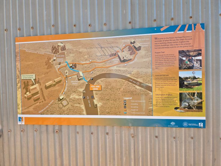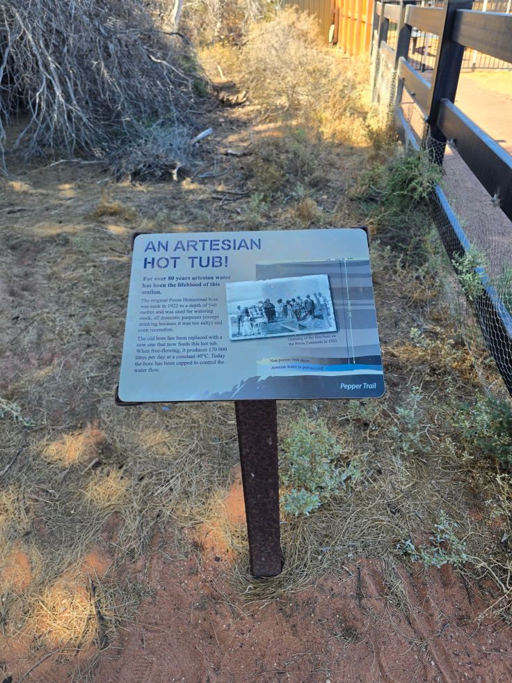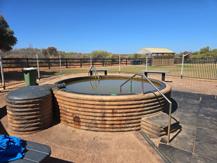 Zum Abschluss dieses ereignisreichen Tages dürfen wir noch ein bisschen Krebs spielen: Wir baden im 40 Grad heißen Wasser des artesischen Brunnens der ehemaligen Schaffarm. Dieses Grundwasser kommt aus über 500 Metern Tiefe und soll sehr gut für Haut und Haare sein – unser Guide taucht hier sekundenlang unter. Nun ja, im Winter oder unter dem nächtlichen Sternenhimmel ist das Bad hier sicher großartig, aber bei einer nahezu identischen Außentemperatur fühlen wir uns tatsächlich eher wie gekochte Krebse.