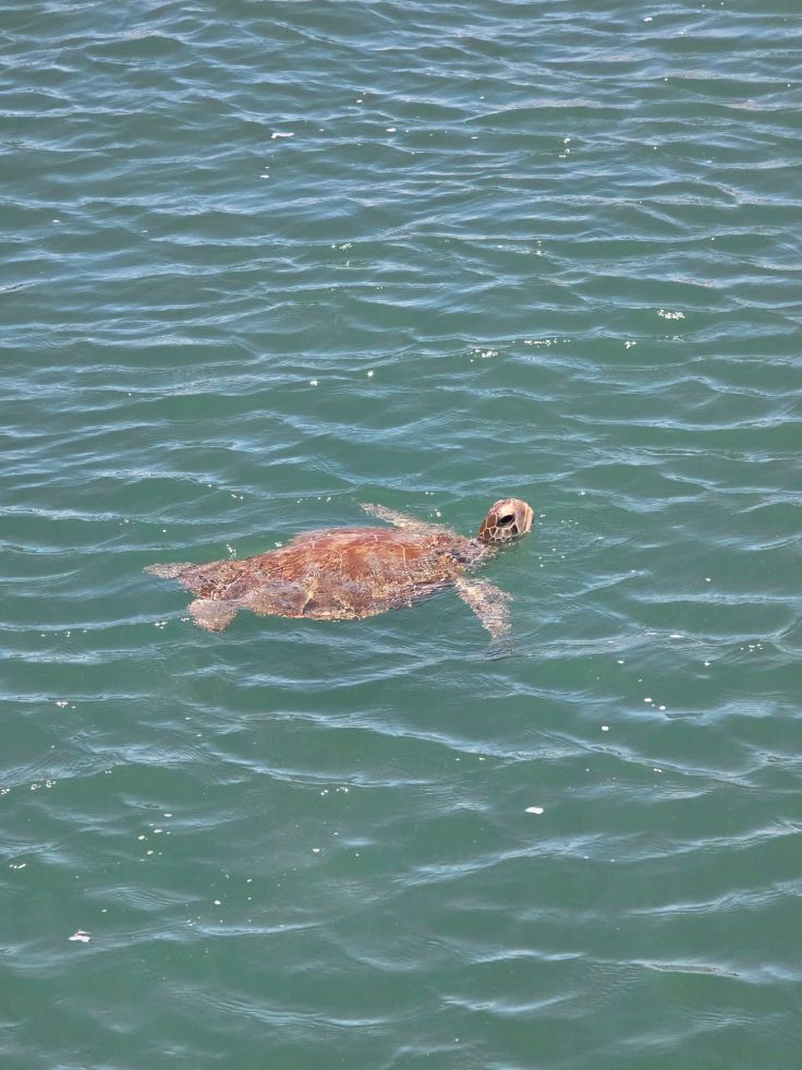 Weitere Delfine, viele Schildkröten, Kormorane und eine Seeschlange komplettieren unsere Tour, die darüber hinaus auch schöne Anblicke von Strand und Küste bietet. Und als kleines Highlight dürfen wir uns zum Abschluss im offenen Netz unseres Segelboots durch die Gischt fahren lassen. Auch diese Tour: absolut empfehlenswert!