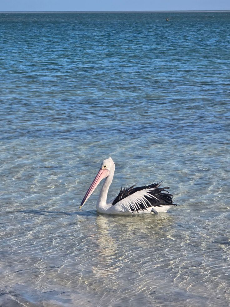 Der schöne Strand sowie der Pier von Monkey bieten die Möglichkeit für weitere Tierbeobachtungen, Emus, Pelikane, Schildkröten und Haie geben sich ein Stelldichein. Erneut fühlen wir uns wie in einem großen Freiluft-Zoo, so nah sind wir allen Tieren.