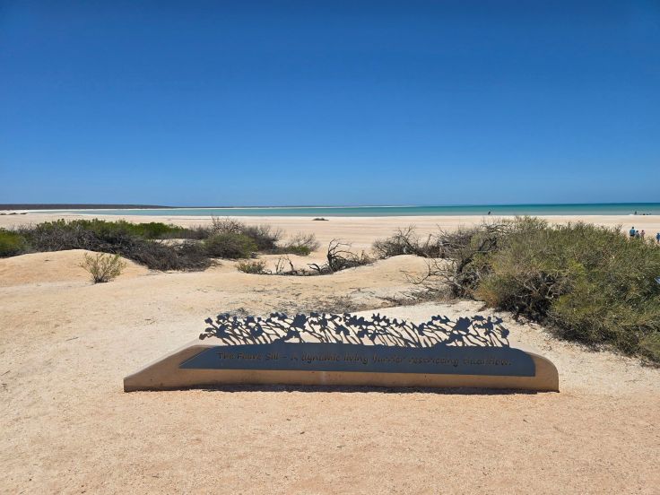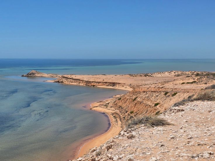 Ob auf der Nord- oder Südhalbkugel: Rund und um den 26. Breitengrad liegen die Wüstenzonen unseres Planeten. Unsere Geografenhirne erinnern sich dunkel: Heiße, feuchte Luft steigt am Äquator auf und gibt dabei ihren Wasserdampf in Form von Niederschlag ab. Die trockenen Luftmassen bewegen sich nord- und südwärts, sinken ab und lassen zwischen dem 15. und 30. Breitengrad Wüsten entstehen, beispielsweise Sahara, Namib oder Kalahari und eben auch die wüstenhaften Gebiete Westaustraliens. Wir sind jetzt am nördlichsten Punkt unserer Westaustralienreise angelangt, etwa 800 Kilometer von Perth entfernt, in der World Heritage Area Shark Bay. Seit 1991 trägt dieses 23.000 Quadratkilometer große Gebiet mit der Haifischbucht, der Peron- und der Edel Land Halbinsel sowie Dirk Hartong Island, diesen Schutzstatus.
